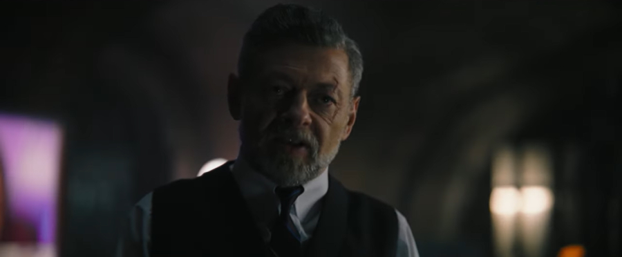 En este nuevo trailer se ve el rostro de Alfred Pennyworth, quien ahora será interpretado por Andy Serkis, un viejo lobo de mar en franquicias basadas en cómics, quien aportará su experiencia al leal mayordomo de Bruce Wayne.
