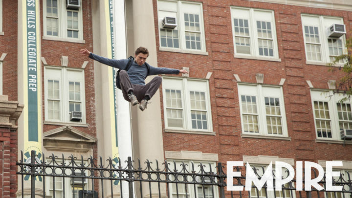 Gracias a Empire llegó ante nosotros una nueva imagen de nuestro querido Peter Parker donde nos demuestra que la gravedad y él no están peleados para nada, dando un increíble salto a la acción, aunque sea nada más para fugarse de la escuela.