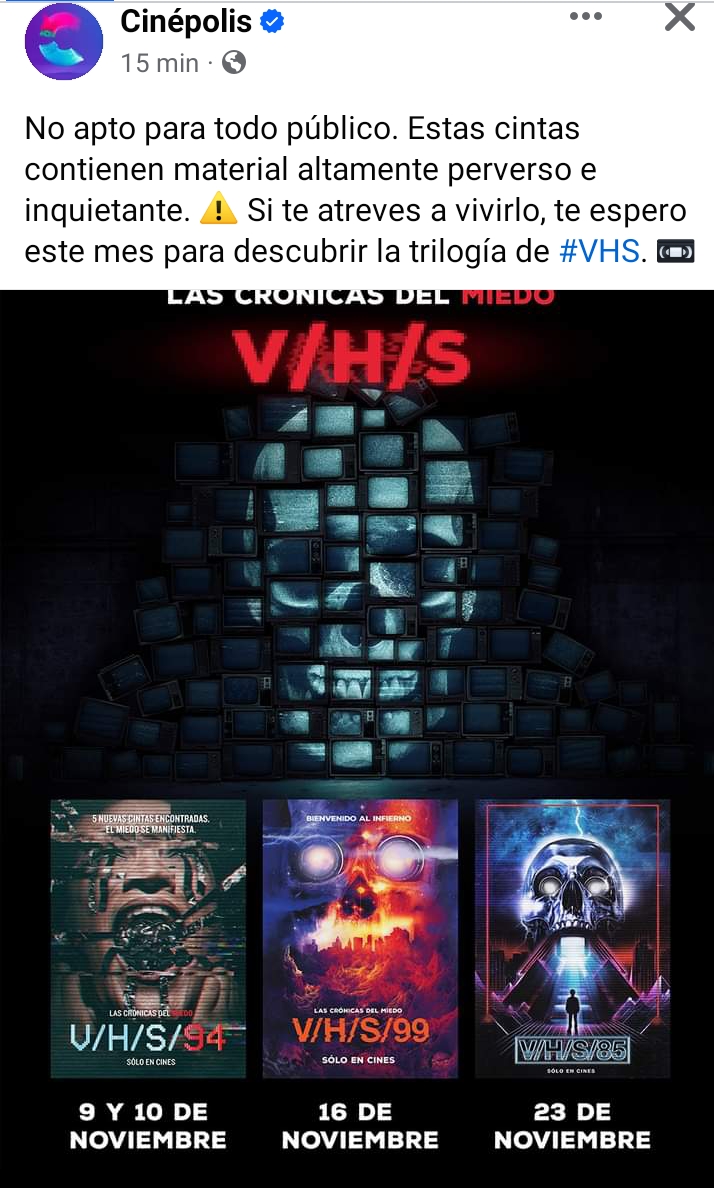 La película que inició la franquicia se destaca por su enfoque innovador en el formato de found footage. Todo comienza con un grupo de criminales que debe encontrar una cinta de video en una casa llena de cintas. Cada una muestra una historia de terror diferente que consigue crear una sensación perturbadora en los espectadores.